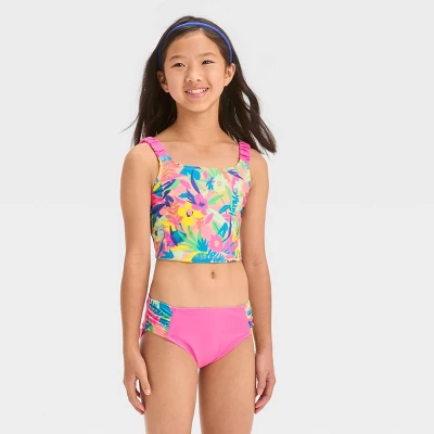 Help your kid dress up in an amazing look with the “Shore Garden” Floral Printed Midkini Set from Cat & Jack™. This two-piece midkini set includes a sleeveless swim top with floral print and cut-out detailing along the neckline, as well as a solid-color swim bottom for a coordinated look. The bottom is designed with pull-on style and elastic at leg openings. Tailored from soft and stretchy fabric, this pink midkini set offers four-way stretch for comfort and sun protection with the UPF 50+ rated fabric.