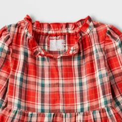 Toddler Girls' Adaptive Abdominal Access Long Sleeve Plaid Tiered Woven Dress – Cat & Jack⢠Red