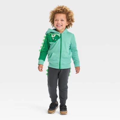 Add dinomite style to your little one’s closet with the Dinosaur Printed French Terry Jogger Pants from Cat & Jack™. These charcoal gray jogger pants features dino-like green spikes along the sides for a cute look. The side and back pockets provide ample space for their hands or small toys, while the full elastic waistband helps keep the pants in place. Made with soft fabric, these high-rise jogger pants offer all-day comfort and are fun to pair with a variety of tops.