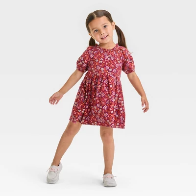 This Short-Sleeve Dress from Cat & Jack™ is fashioned in an at-knee length and showcases an allover floral print on a deep burgundy backdrop for pretty charm. The lightweight gauzy material offers cool and comfy all-day wear, while the pullover round neckline makes dressing easy. Add sandals or sneakers to complete the look.